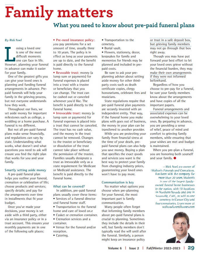 President/Owner Walton’s Funerals & Cremations Type of Business: Funeral Home, Cemetery & Crematories Based In: Reno, Sparks, Carson City, Gardnerville, Susanville…